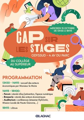 Par EMILIE VINDEL, publié le vendredi 10 octobre 2025 10:18 - Mis à jour le vendredi 10 octobre 2025 10:18Cap sur les stages, de la 4ème aux études supérieures RDV dès 14h15 à l'espace culturel Odyssud -