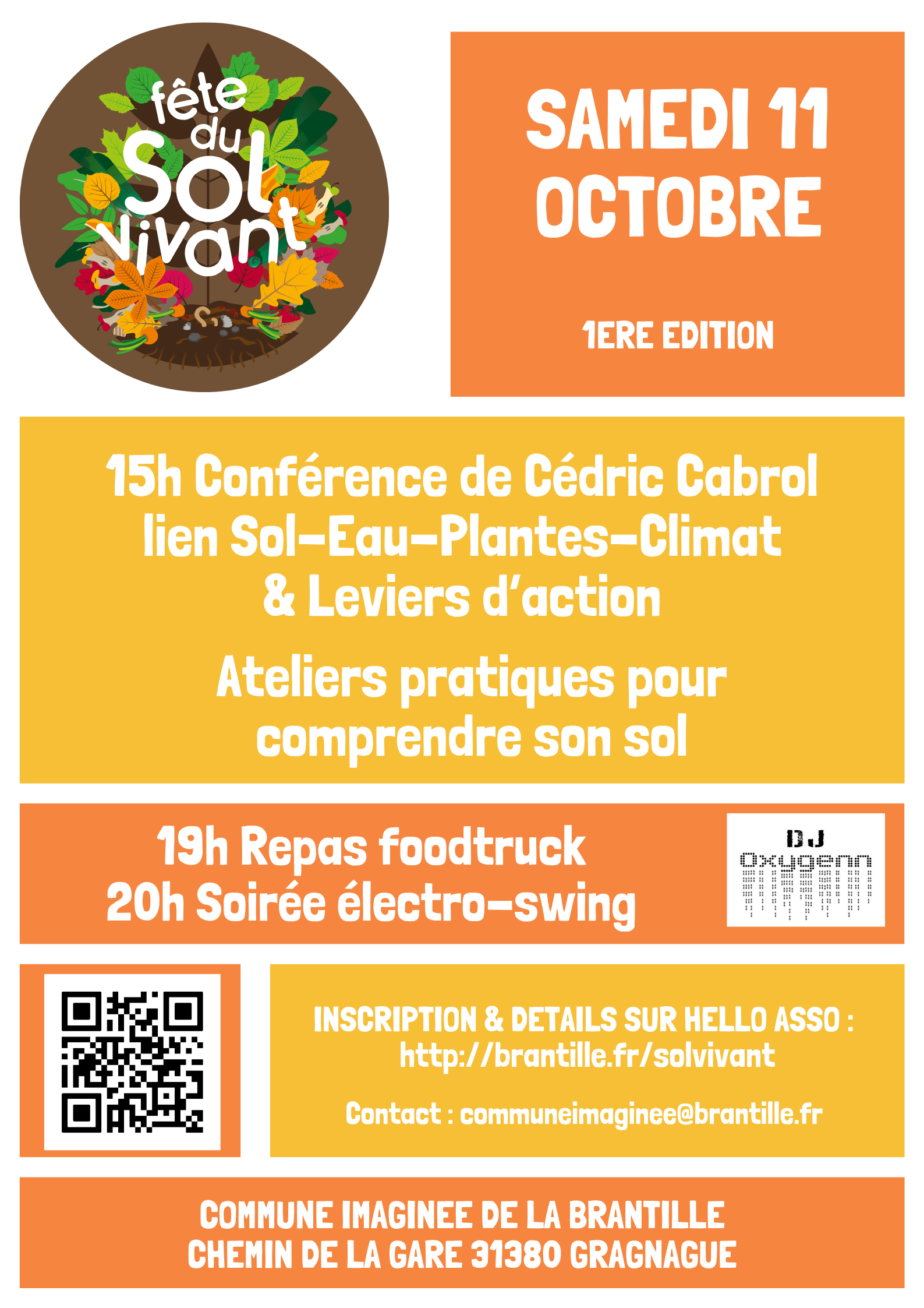 La fête du Sol Vivant est l'occasion de s'informer sur le sol de nos jardins, de nos communes et de comprendre qu'un sol plein de vie est un sol riche ! Au programme : Conférence, ateliers, foodtrucks... Un moment convivial et instructif !