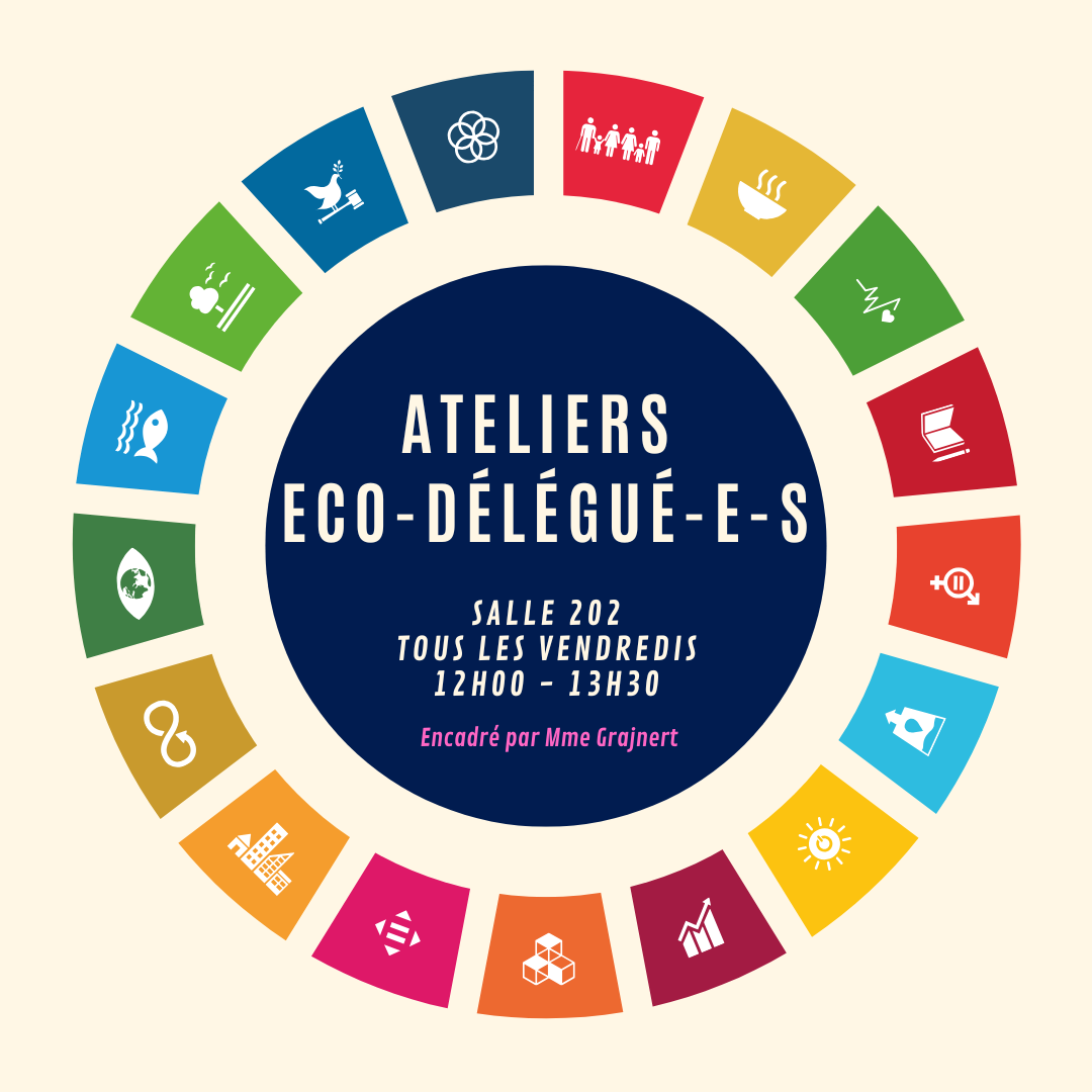 Félicitations aux élèves élu-e-s. Bienvenue à eux dans l'équipe des éco-délégués !Cette année les ateliers des éco-délégués se tiendront chaque semaine le vendredi de 12h à 13h30